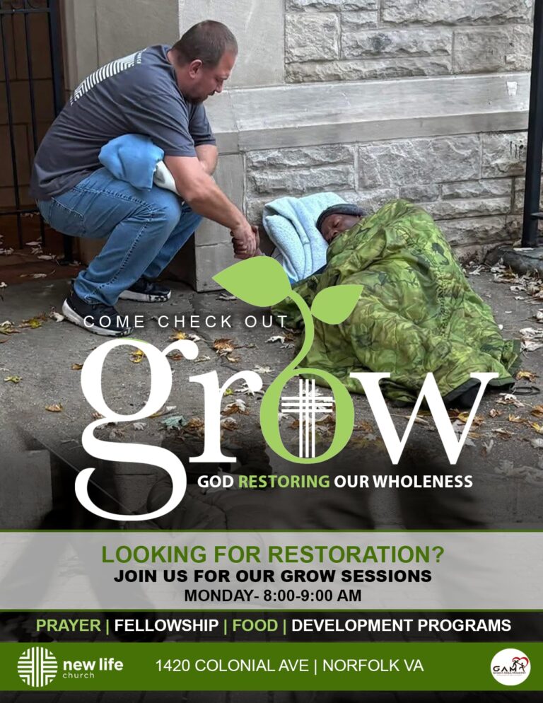 In partnership with New Life Church, Grow meets every Monday morning at 8am for Bible Study, Breakfast and provides bus passes.