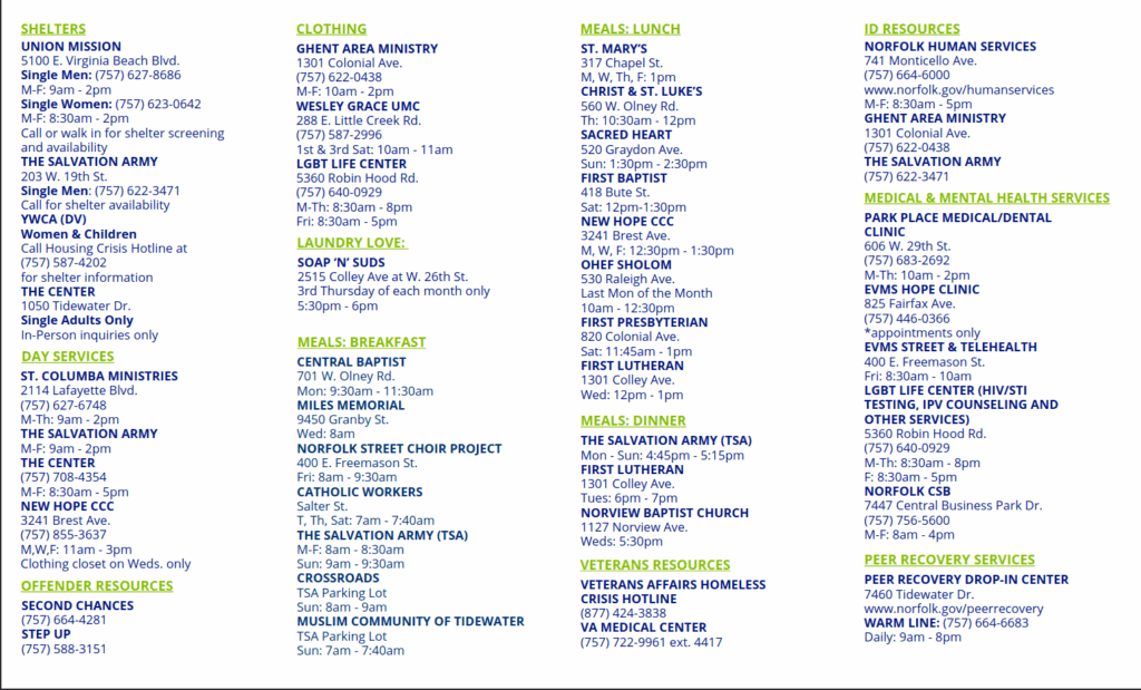 Dream Center meets every Friday morning at 8:00 am at Freemason Street Baptist Church to offer showers to those in need. The Dream Center provides a towel, underclothes and toiletries.